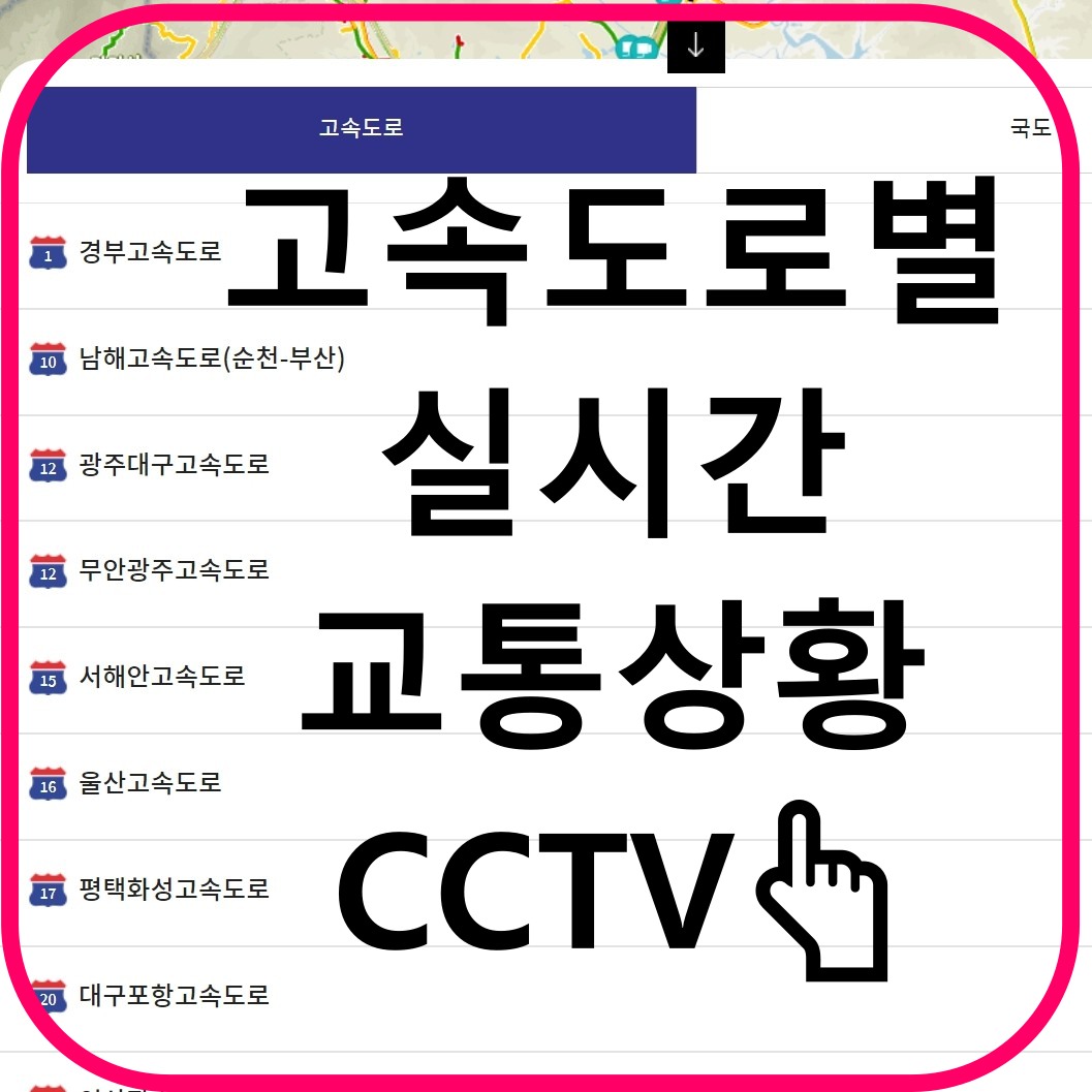 해당 고속도로를 누르시면 고속도로별 교통상황과 CCTV를 실시간으로 확인하실 수 있습니다.