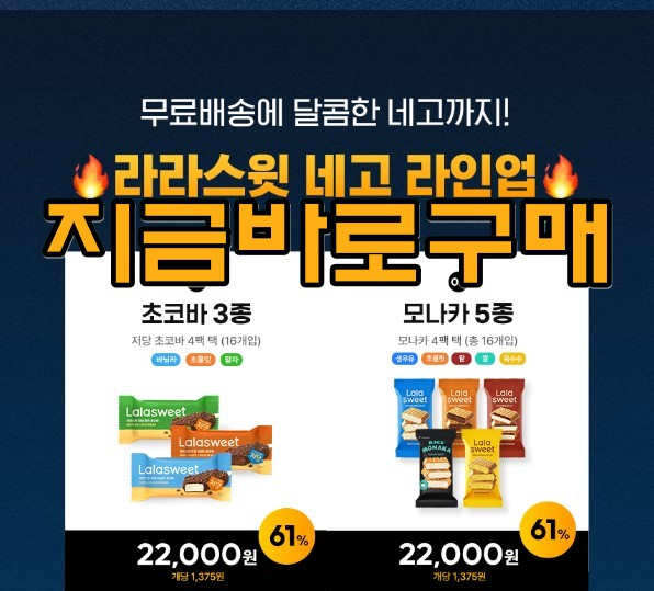 네고왕 이벤트는 라라스윗 공식몰 회원만 구매 가능합니다.