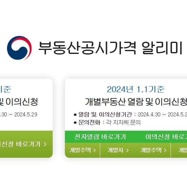 부동산 기준시가 조회 공시가격 알리미