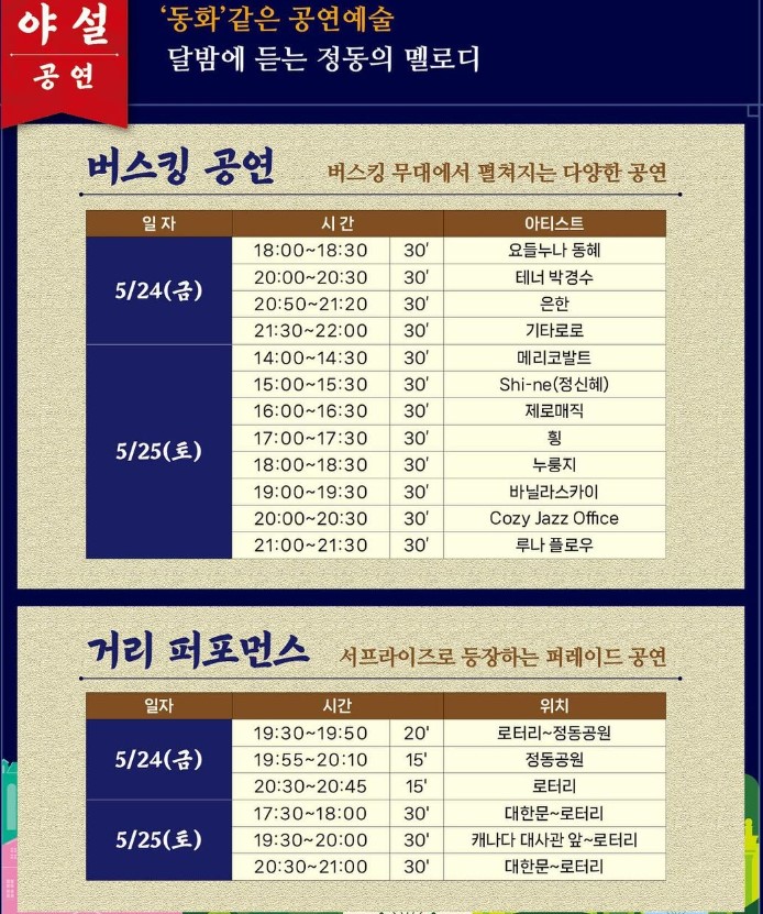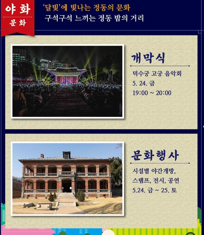 🌒야화(夜花) : 정동야행 개막식, 정동의 36개소 시설 야간개방 및 전시, 공연 등
