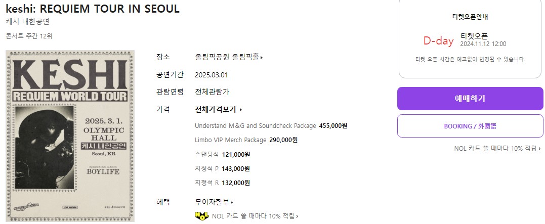 케시 내한 티켓팅 안내