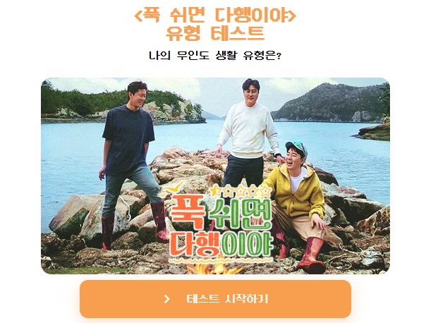 푹쉬면 다행이야 무인도 생활 유형 테스트를 하시고 결과를 공식 홈페이지 이벤트 게시판에 댓글을 남겨주